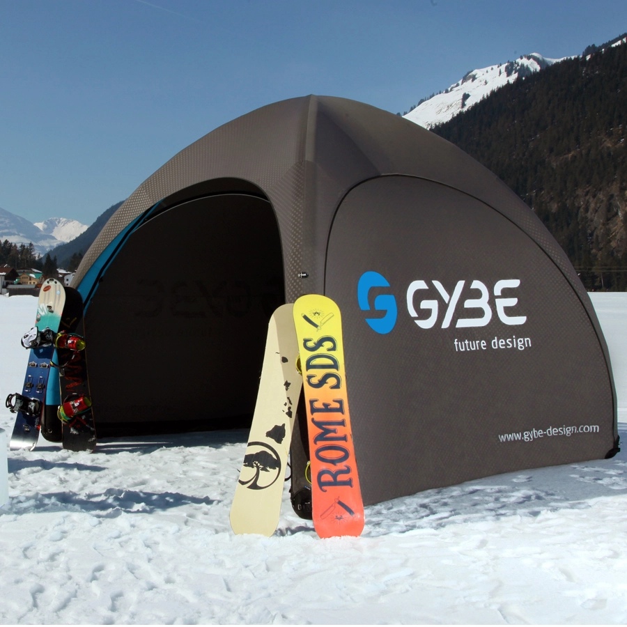 Auch im Trend sind unseren aufblasbaren Eventzelte Gybe und Signus One. Aussergewöhnliches Design im kleinsten Packmaß zum Aufpumpen. Diese Druckluft Eventzelte sind unübersehbar und funktional nicht zu übertreffen.