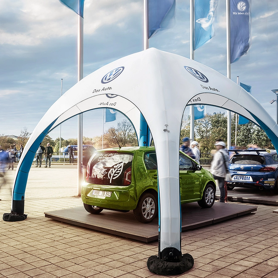 Ein bedrucktes aufblasbares Eventzelt ist ein temporäres Zelt, das aus aufblasbaren Wänden besteht, die bedruckt werden können, um eine individuelle Gestaltung zu ermöglichen. Die Eventzelte sind einfach aufzubauen und können für eine Vielzahl von Veranstaltungen wie Messen, Konzerte und Sportveranstaltungen genutzt werden.