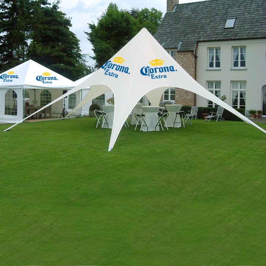 Unsere aufblasbaren Eventzelte sind der Hingucker schlechthin. Dei pneumatischen Eventzelte werden mit Druckluft aufgepumt und zudem sind sie geräuschlos. Weiter bieten wir Ihnen auch den Klassiker Werbezelt Faltzelt an. Auch unsere unverwechselbaren Sternzelt Eventzelt sind der Hingucker schlechthin. Die Eventzelte können ohne Werkzeug oder Fachkenntnisse aufgebaut werden. Gerne übernimmt unsere Grafikabteilung die Gestaltung der Eventzelte. Die Eventzelt Bedruckung wird hochwertig mit einem Thermosublimationsdrucker oder UV-Drucker produziert. Die Eventzelte können Sie online zusammenstellen und perfekt auf Ihre Werbeaktion anpassen. Bei einer dringenden Eventzelt Express Lieferung, steht Ihnen unsere Express-Hotline 069 - 150 49 30 14 gerne zur Verfügung