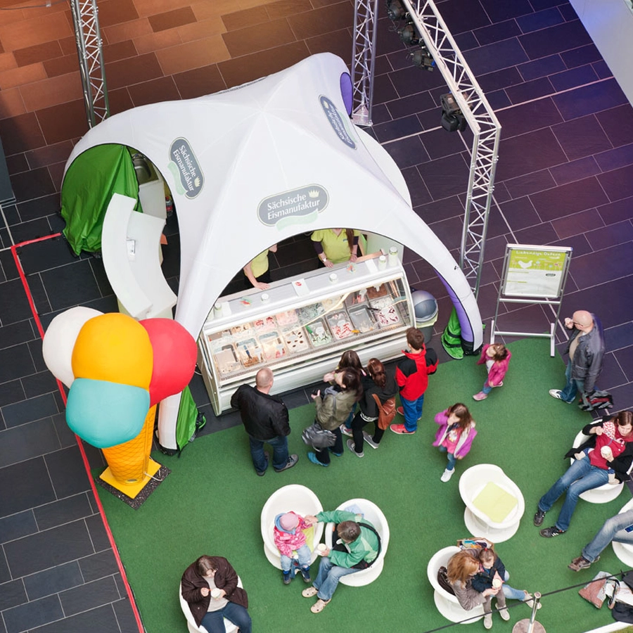 8,5m² Thermosublimationsdruck für das Dach des GYBE Event Tent 10Feet.