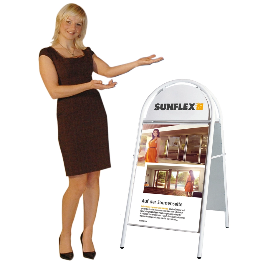 Auch eilige Kunden werfen einen Blick auf attraktive Kundenstopper & Plakatrahmen - und bleiben im besten Falle stehen. Kundenstopper und Aufsteller sollen Interesse wecken und den Besucher zum Bleiben bewegen. Unsere Kundenstopper & Plakatrahmen sind Hochleistungsprodukte für den langfristigen Einsatz im Innen- und Außenbereich. Der stabile Aluminiumklapprahmen trotzt allen Wetterlagen und bietet eine schöne, neutrale Umrahmung Ihrer Werbebotschaften.