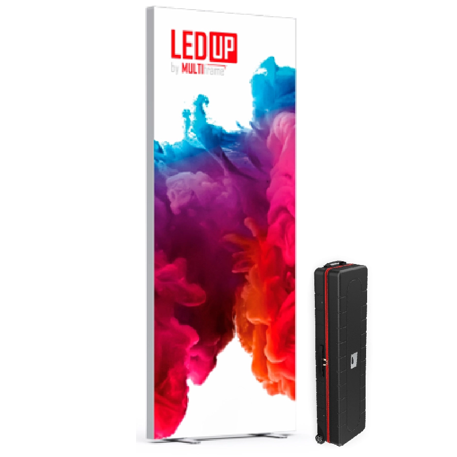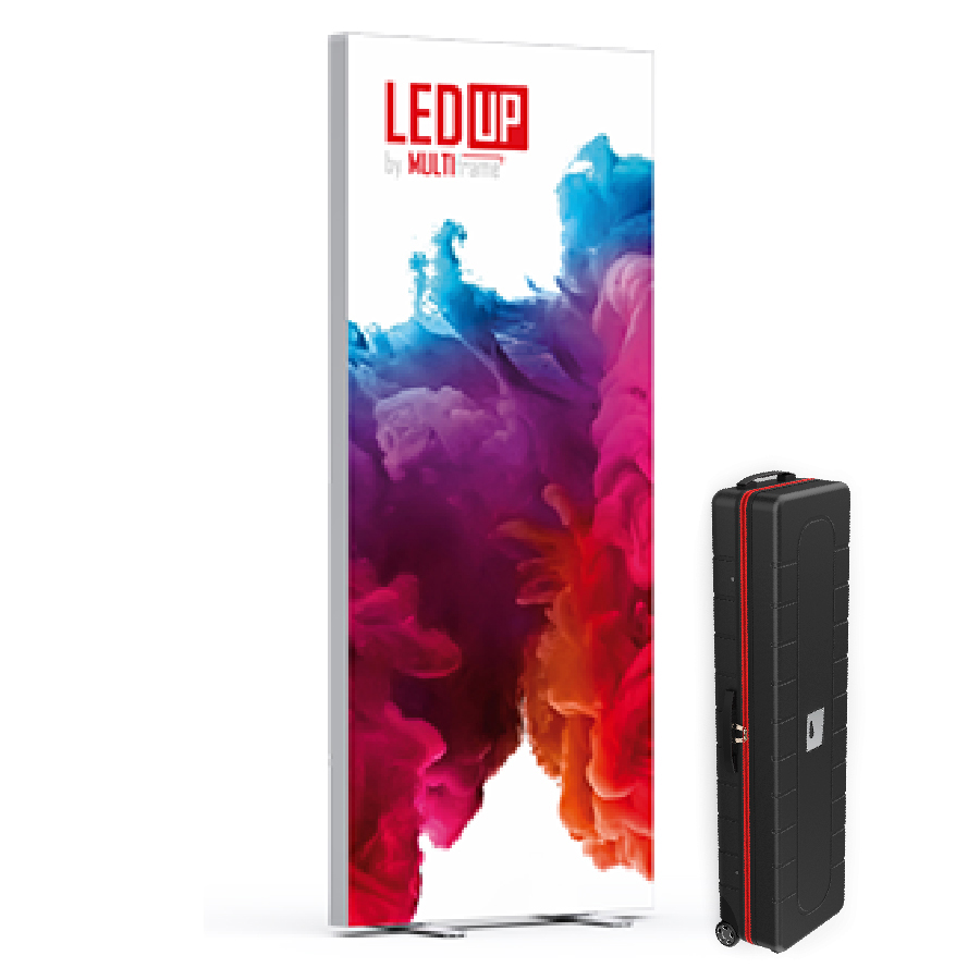 LED Messewand beleuchtet für die maximale Aufmerksamkeit. Die mobile LED Messewand: Schneller Selbstaufbau ohne Werkzeug, kleinstes Packmaß und Fokus auf die Zielgruppe. Mit unserer LED Messewand erreichen Sie in minimaler Zeit die maximale Awarness. Gerne übernimmt unsere Grafikabteilung die Gestaltung der LED Messewand. Die LED Messewand Bedruckung wird hochwertig mit einem Thermosublimationsdrucker oder UV-Drucker produziert. Die LED Messewände können Sie online zusammenstellen und perfekt auf Ihre Werbeaktion anpassen. Bei einer dringenden LED Messestand Express Lieferung, steht Ihnen unsere Express-Hotline 069 - 150 49 30 14 gerne zur Verfügung.