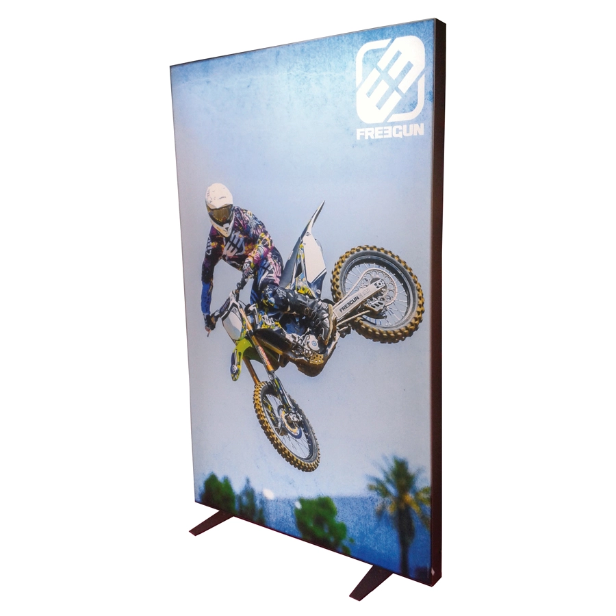 Die LED Messewand besteht aus einem leichten Rahmen. Sobald die LED Messewand zusammengebaut ist, können Sie die Paneele aufgehängt werden. Die Textilien werden bedruckt, um eine durchgehende, nahtlose grafische Darstellung zu erhalten. Alternativ können Textilien verwendet werden als LED Messewand Textil, an der Sie Ihr die gedruckte Textilie mit Klettverschluss befestigen können. In jedem Fall werden die Paneele an der Vorderseite des Standes angebracht, um eine vollständige, rundumlaufende Darstellung zu schaffen.