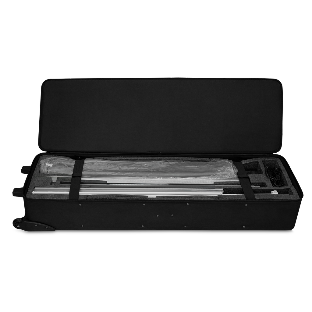 LED Messewand X-LED 2000x2500mm BxH inkl. hochwertigem Thermosublimationsdruck auf LTex Backlit und Transportrolley