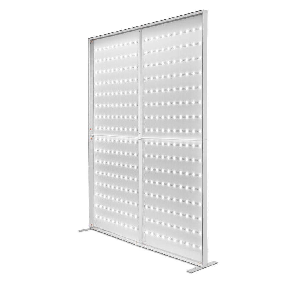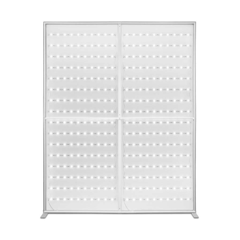 LED Messewand X-LED 6000x2500mm BxH inkl. hochwertigem Thermosublimationsdruck auf LTex Backlit und Transportrolley