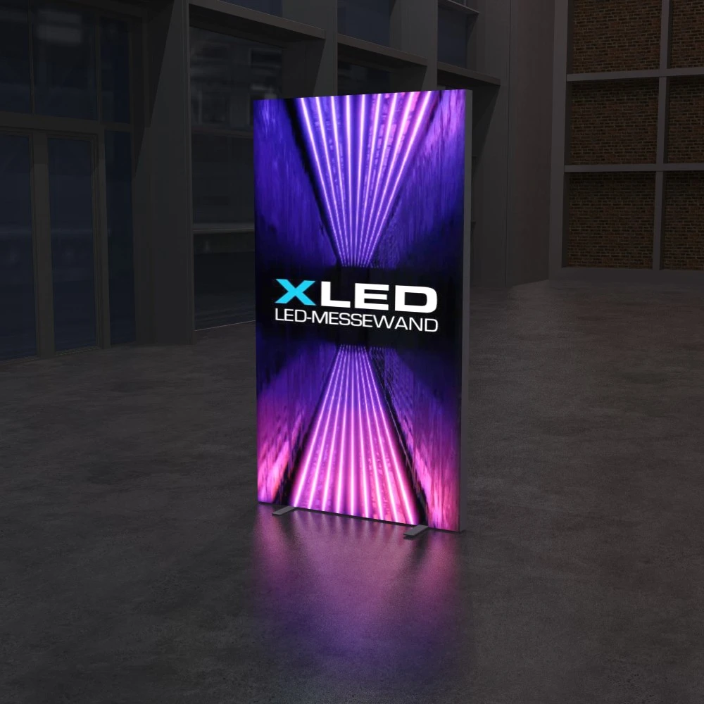 Setzen Sie Ihr Unternehmen bei jedem Auftritt ins beste Licht – mit unserer LED-beleuchteten Textil-Werbewand. Modern, mobil und maximal aufmerksamkeitsstark.