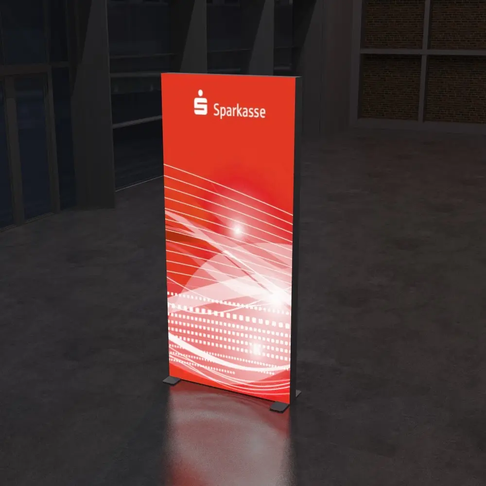 Ein erfolgreicher Markenauftritt beginnt mit einer überzeugenden Präsentation – und genau hier setzt unsere LED-Werbewand mit hochwertigem Textildruck an. Sie vereint starke visuelle Wirkung mit durchdachter Funktionalität: Der elegante Aluminiumrahmen mit integrierter LED-Beleuchtung bringt Ihr Motiv zum Strahlen und zieht die Aufmerksamkeit Ihrer Zielgruppe auf sich – hell, hochwertig und absolut professionell.