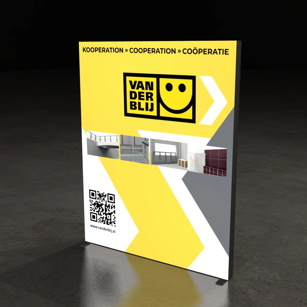 - Hochwertiger Textildruck: Farbenstark, faltenfrei und auswechselbar – ideal für wechselnde Kampagnen