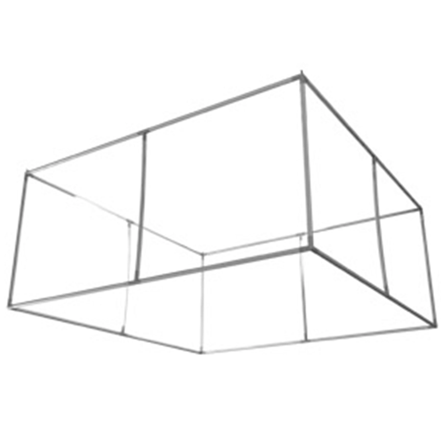 MesseDeckenhängerRectangle2.0L, komplett mit einseitig bedrucktem Textillüberzug aus leicht dehnbaren und dichten Stoff (Polyester) 190g/m², M1/B1 und Transporttasche.