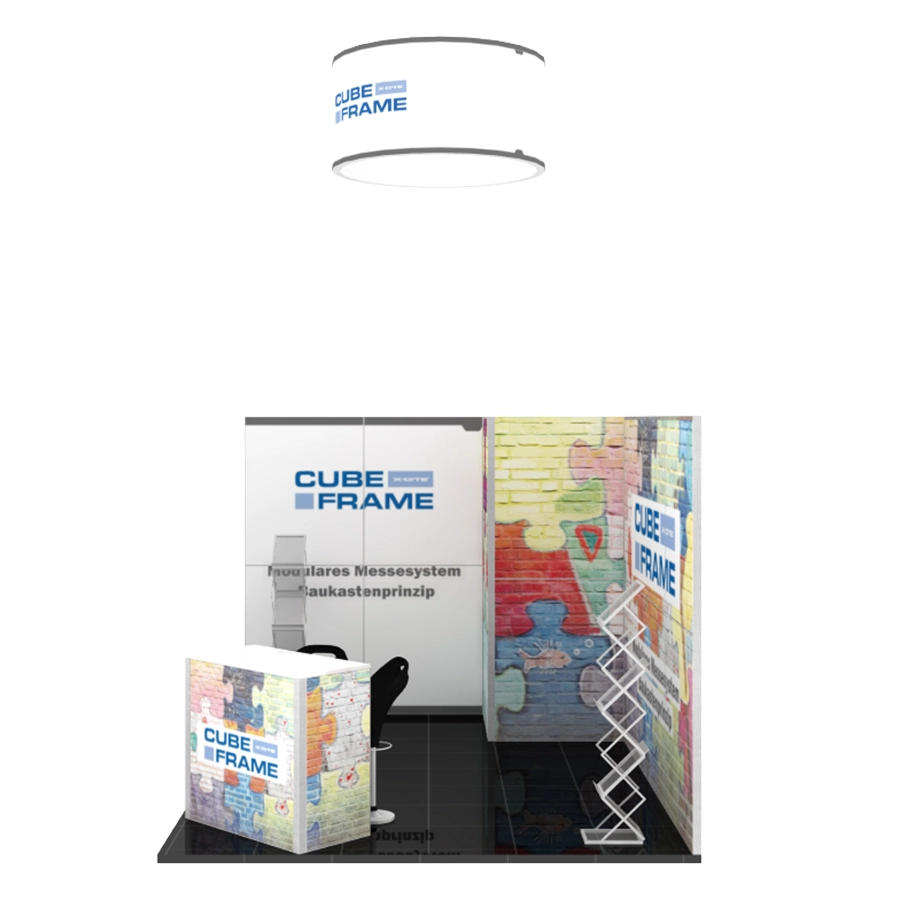 Messestand CUBE-Frame 3x4m - C3 komplett inkl. Druck, Beleuchtung und Transportverpackung