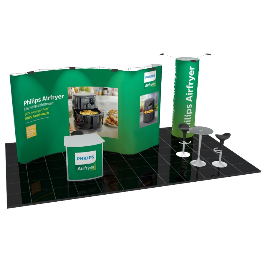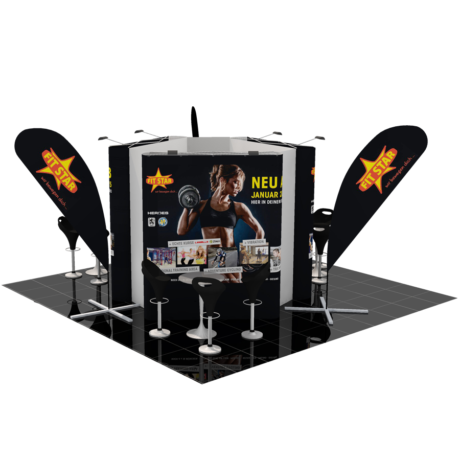 Large Faltdisplay Messestand 3x4m zum Selbstaufbau Kopfstand