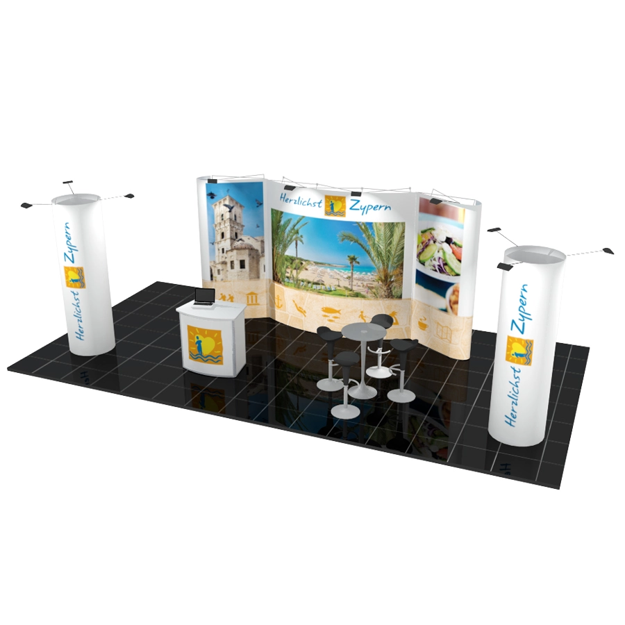 Faltdisplay Messestand 3x6m - F18 - komplett inkl. Druck, Beleuchtung und Transportverpackung