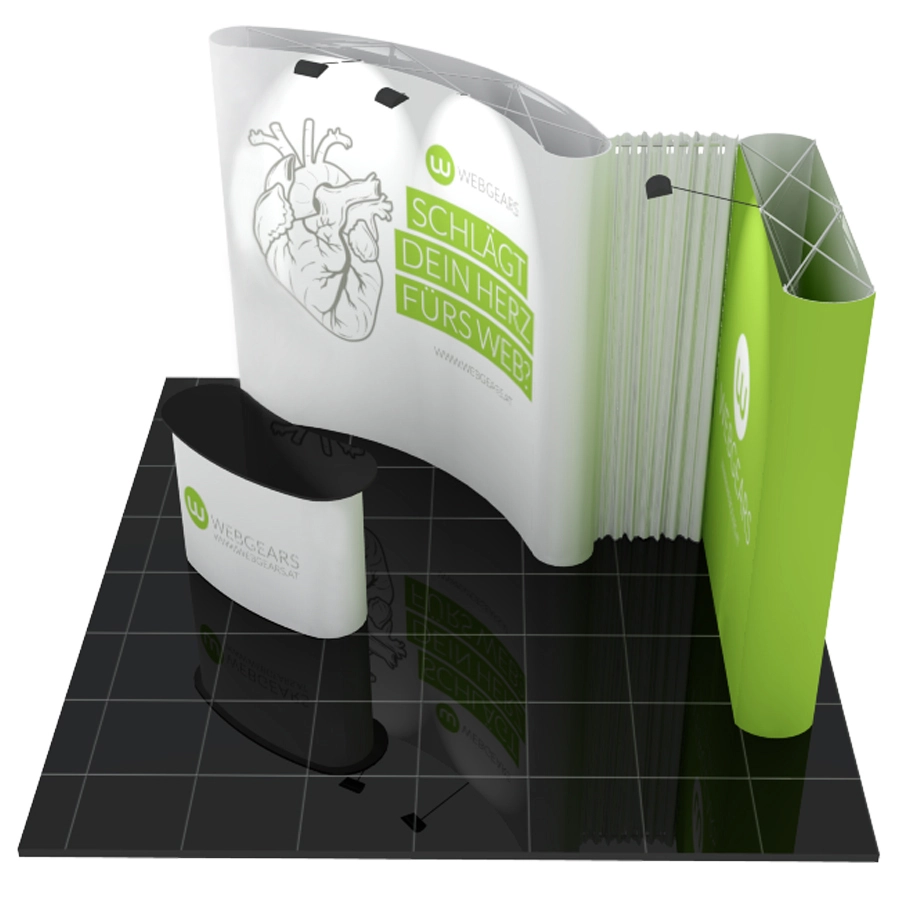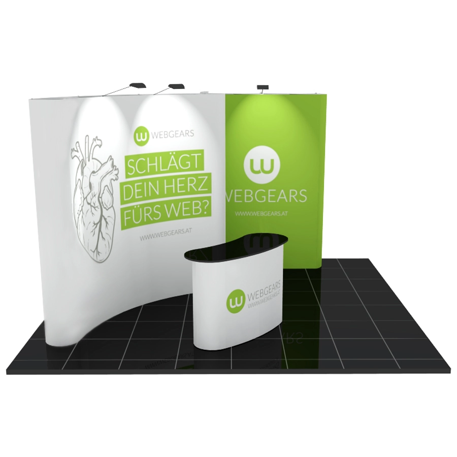 Faltdisplay Messestand 4x6m - F19 - komplett inkl. Druck, Beleuchtung und Transportverpackung