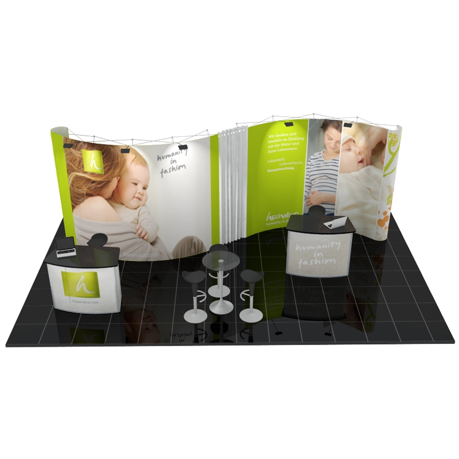 Faltdisplay Messestand 4x8m - F22 - komplett inkl. Druck, Beleuchtung und Transportverpackung