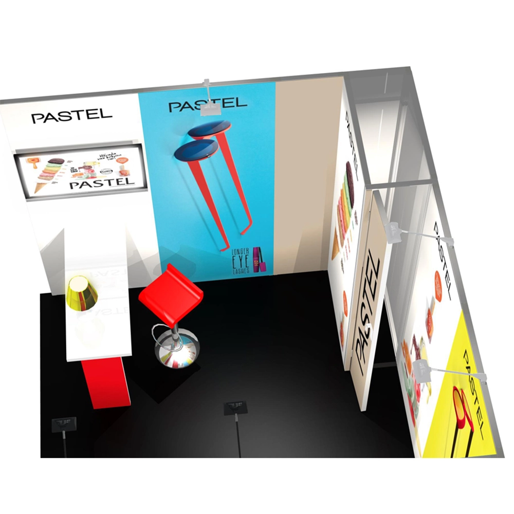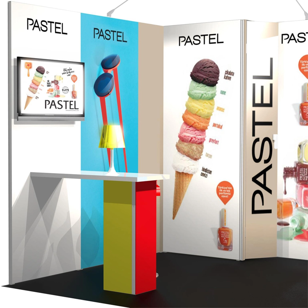 Panoramic H-Line Messestand 3x3m - H13 komplett inkl. Druck, Beleuchtung und rollbarer Transportkiste.