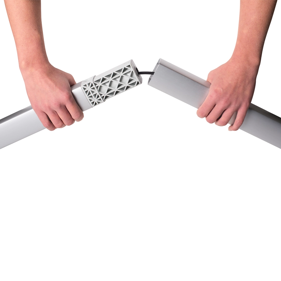 Hochwertige LED Spot für alle Faltdisplays, Messewände und CUBE-Frame Rahmensysteme. Farbe: grau. Eine praktische Transporttasche (für bis zu 2 Zusatzlampen) ist ebenfalls als Zubehör erhältlich. Lichtfarbe (K) +/- 4000 K. Maximale Kapazität 10 x WLED 50 auf 1 Strompunkt