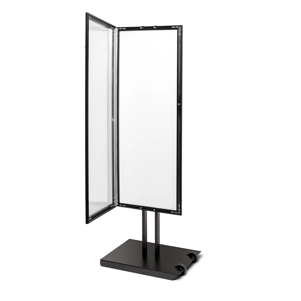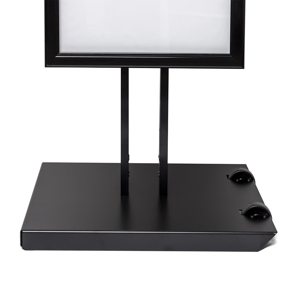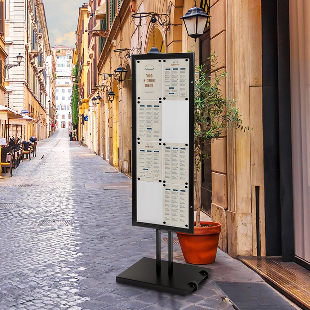 Go big, go OutdoorZiehen Sie mit dem Outdoor Menständer Schwarz alle Blicke auf Ihr Plakat oder Ihre Speisekarte. Der freistehende Ständer sorgt dafür, dass jede Promotion und Werbung dank des schlanken Designs raffiniert aussieht. Dank der Räder lässt er sich leicht an jeden gewünschten Ort bewegen. Rollen Sie das Display mit Rädern einfach nach draußen, und schon ist es einsatzbereit. Er ist die perfekte Lösung für den Einzelhandel und das Gastgewerbe.
