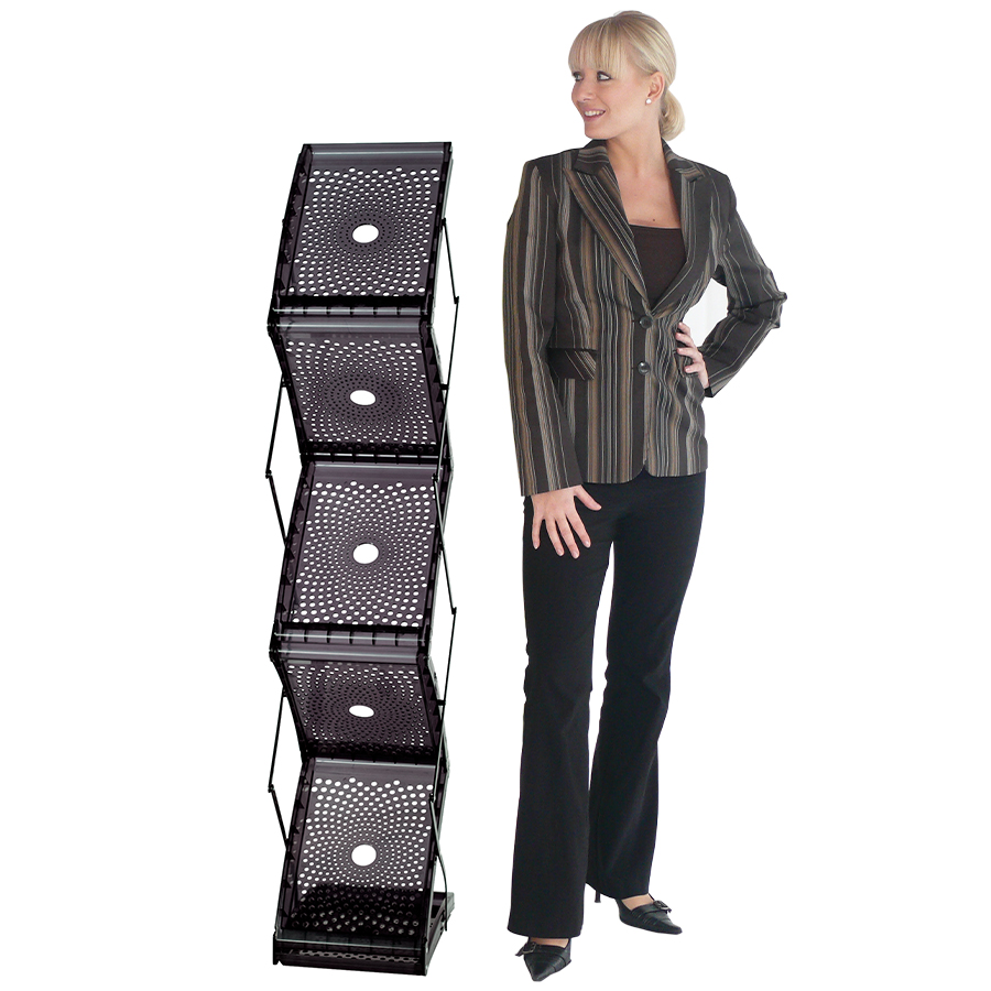 Zweitens sind Prospektständer äußerst praktisch und platzsparend. Im Vergleich zu herkömmlichen Tischen oder Regalen nehmen sie weniger Platz in Anspruch und können flexibel aufgestellt werden. Sie eignen sich somit auch für kleine Messestände oder enge Räumlichkeiten.