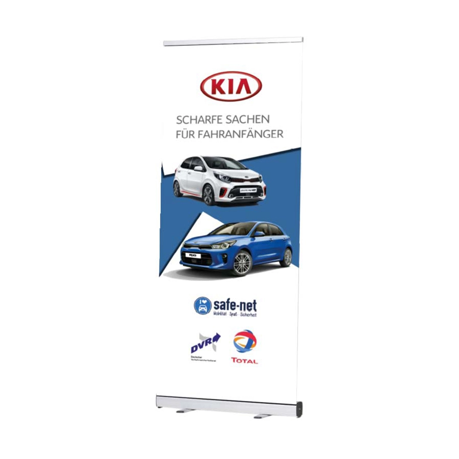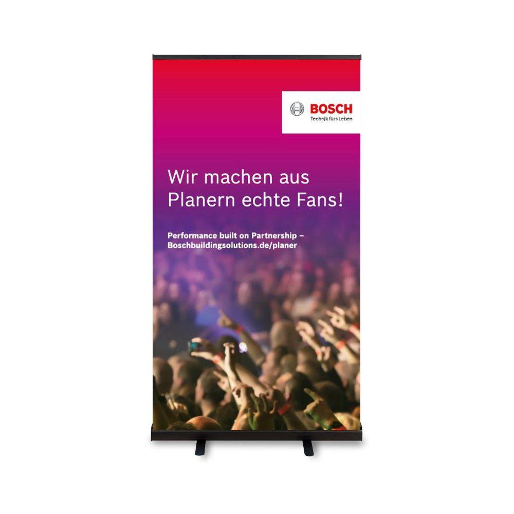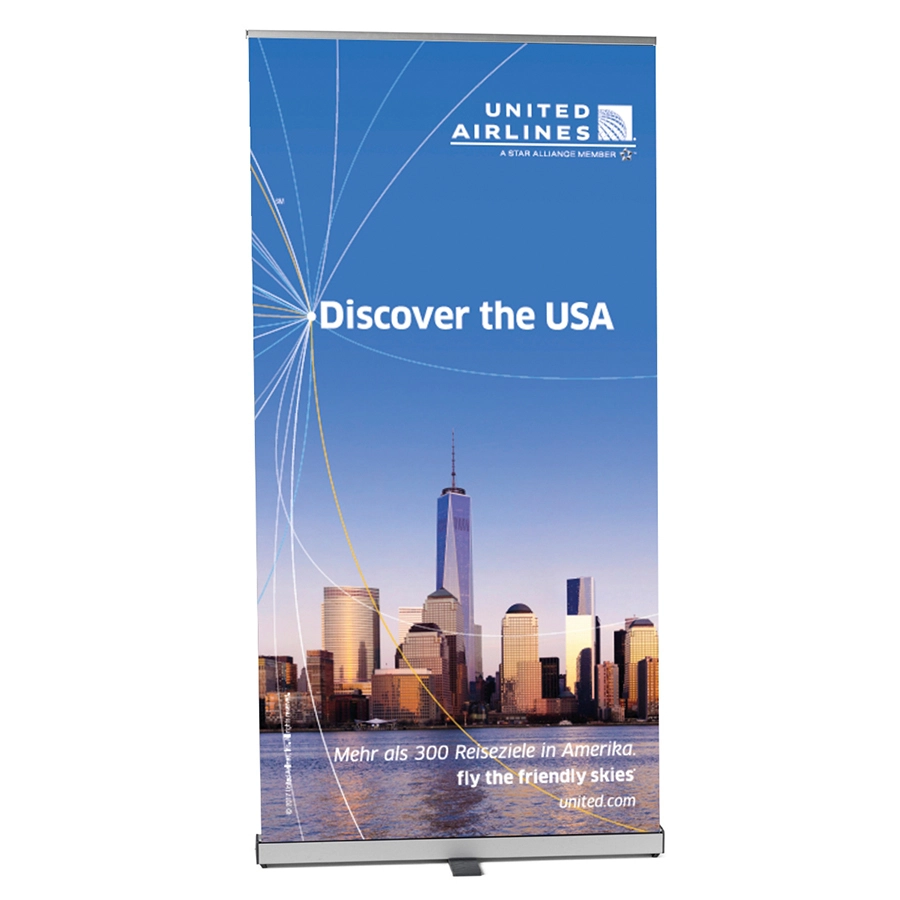 Ob Messe, Event, Kongress, Promotion oder saisonale Verkaufsaktion – mit unseren hochwertigen Rollup-Bannern setzen Sie Ihre Marke perfekt in Szene. Die Banner sind in wenigen Sekunden aufgestellt, mobil einsetzbar und benötigen kein Werkzeug. Dank individueller Bedruckung – vom Logodruck bis zum vollflächigen Design – präsentieren Sie sich professionell und wirkungsvoll. Der brillanter Digitaldruck sorgt für maximale Farbwirkung. Auf Wunsch bieten wir einen Grafikservice zum Festpreis. Auch eine Rollup Banner Express Produktion in nur 24 Stunden ist möglich! Express-Hotline: 069 - 150 49 30 14 jetzt einen Rollup Banner bestellen, günstig bedruckt kaufen vom Hersteller!