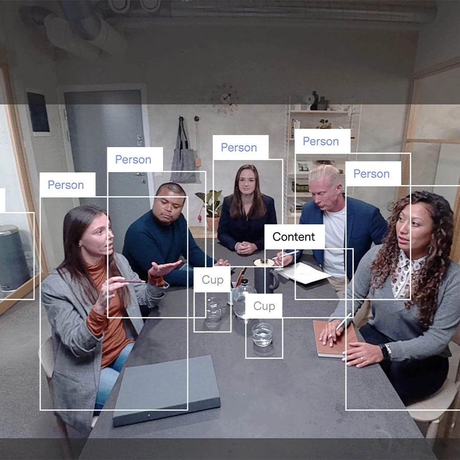 Wir bei Huddly glauben, dass intelligentes Video bessere Meetings bedeutet. Eine eingebettete neuronale Engine ermöglicht es IQ, seine Umgebung in Echtzeit zu sehen, zu verstehen und darauf zu reagieren. Mit der Funktion "Genius Framing" kann diese die Personen in seinem Blickfeld erkennen und reagiert, indem er sie automatisch umrahmt.