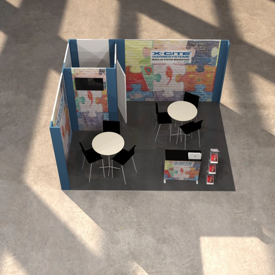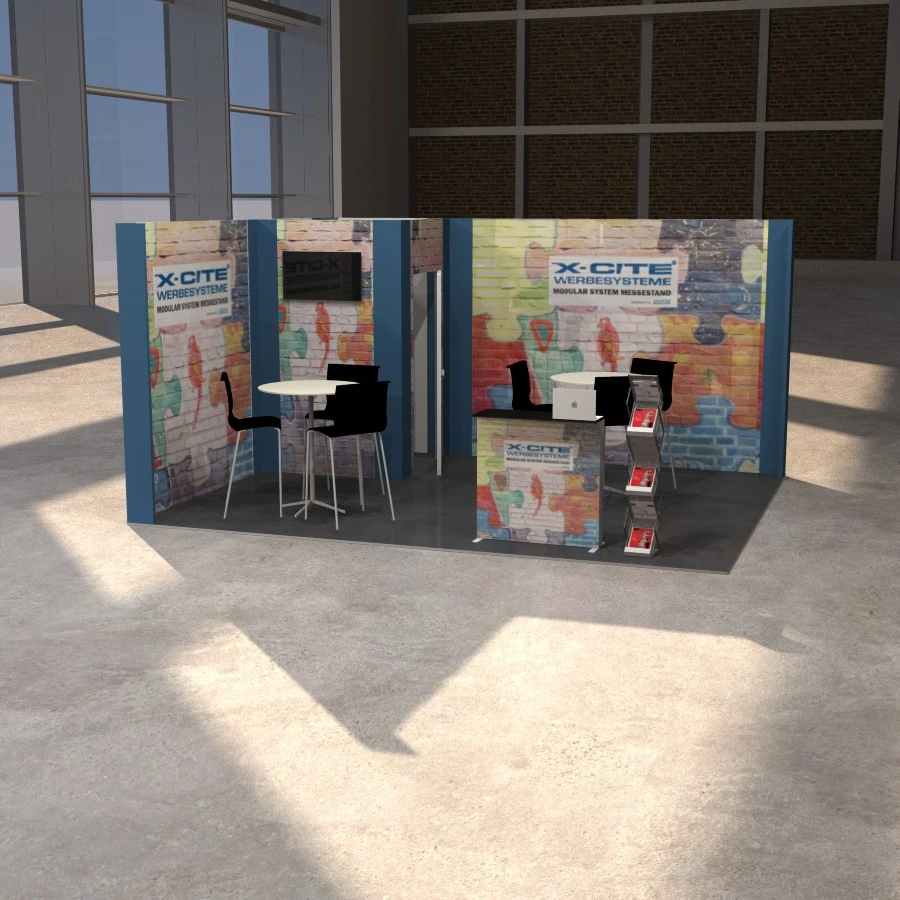 Nachhaltiger Messestand VOMO Large 4x4 Eckstand | 400 x 250cm | X-CITE® Werbesysteme
