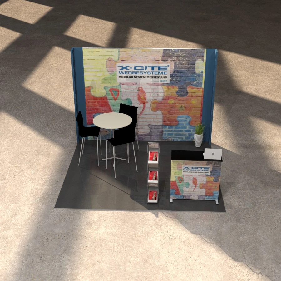 Nachhaltiger Messestand VOMO Medium 3x3 Kopfstand | 300 x 250cm | X-CITE® Werbesysteme