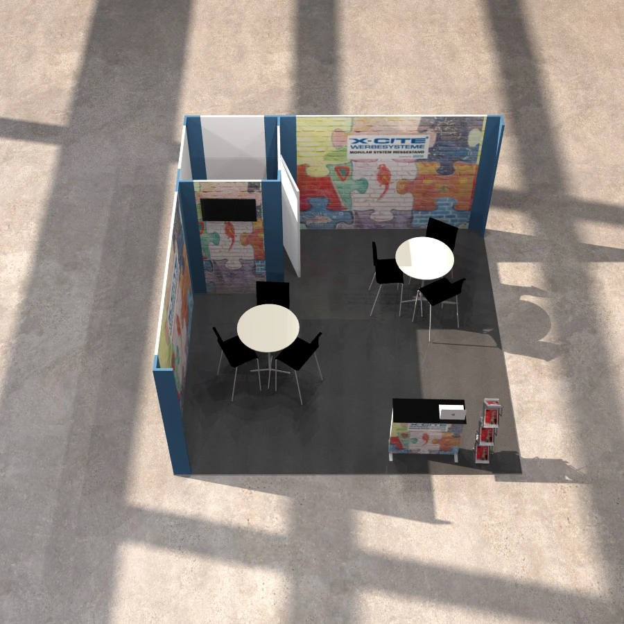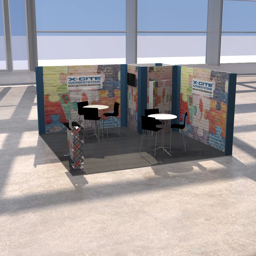 Nachhaltiger Messestand VOMO X-Large 5x5 Eckstand | 500 x 250cm | X-CITE® Werbesysteme
