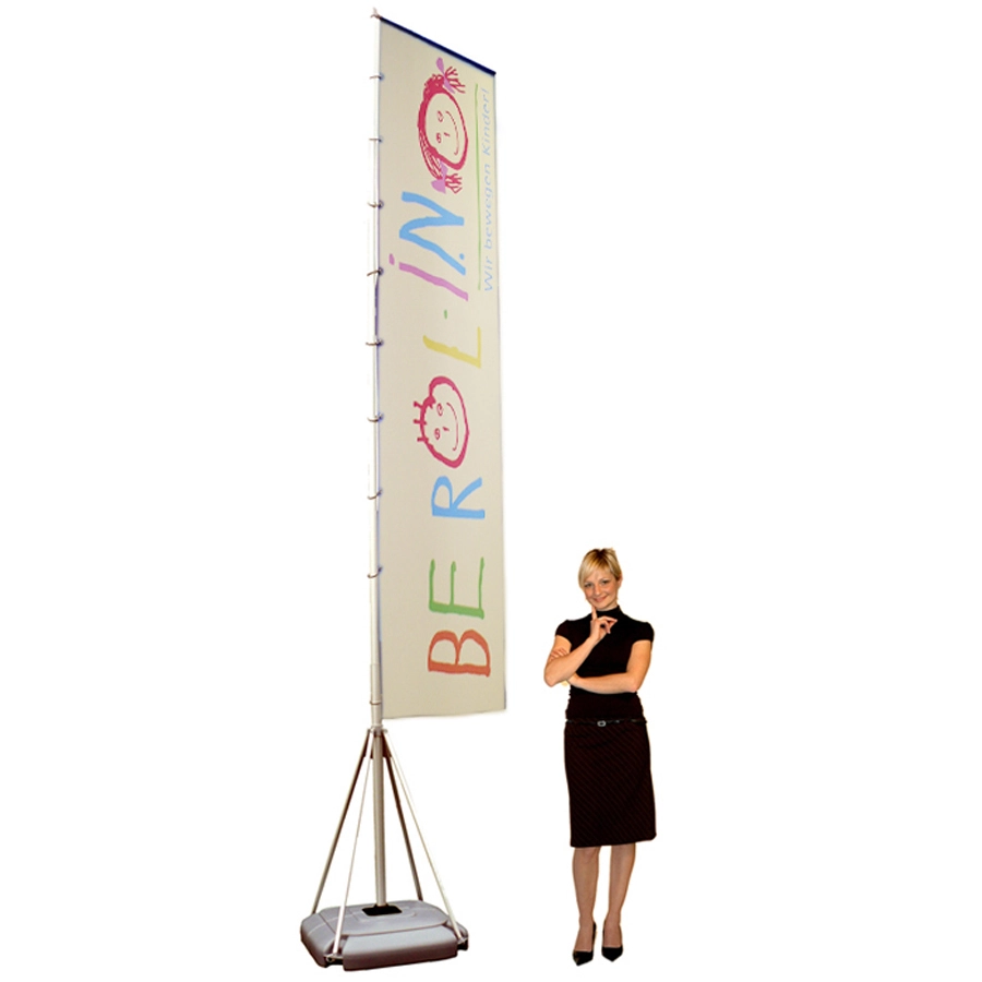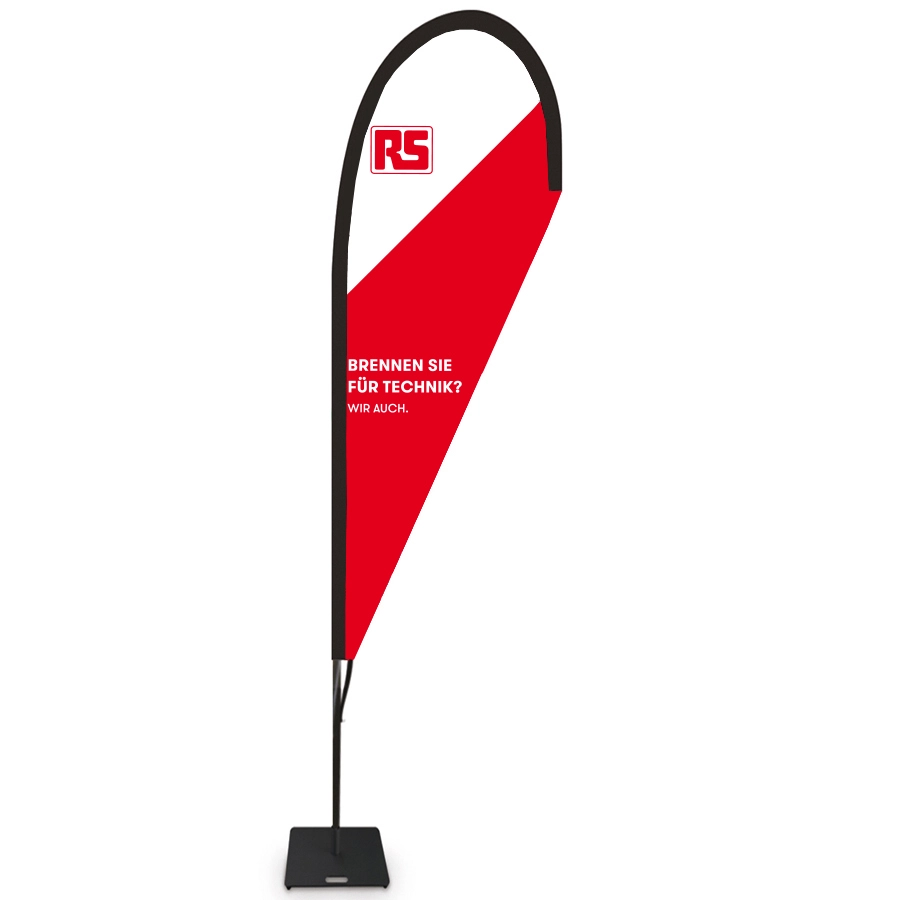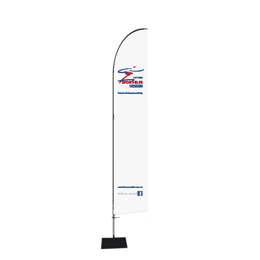 Beachflags hatten vielleicht ihren Einstieg am Strand, aber sie finden sich inzwischen bei allen denkbaren Veranstaltungen. Das ist auch gut so, denn die charmant abgerundete Form sieht immer gut aus. Sie müssen dafür nicht in Sandeimer gesteckt werden, sondern können stabil auf Kreuz- oder quadratische Flachfüße gestellt werden. Mit einem zusätzlich gekauften Erdspieß tauschen Sie den Fuß bei Bedarf einfach aus und stecken des Beachflags in die Erde, den Sand oder Rasen.