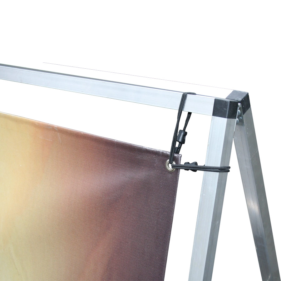 Mobile Werbebande 3m, inkl. hochauflösendem Digitaldruck auf PVC Frontlit-Folie für beide Seiten, Gummispannern, Bodenheringen und Transporttasche.